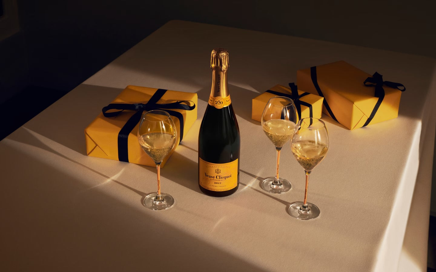 Veuve Clicquot Brut Yellow Label Champagne + Riedel Ouverture Champagne Glass Gift Set in a Wooden Box: The Quintessence of Celebration